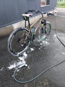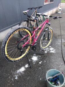 レースの翌日はキレイに洗車と注油、チェックしてマウンテンバイクの労をねぎらいに♪