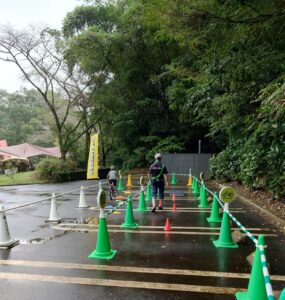 雨上がりの生憎のコンデションでブロアーをお借りして箒で掃きながらコースを作成、今回はコンディションとコースのサイズを考慮して障害物を少な目にしました