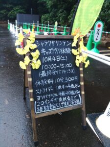 雨は弱く降ったり、上がったりの繰り返しで濡れてる路面もあって参加者は少なかったんですが、楽しんでくれたお子さんは障害物をよけたり、乗り越えたりして楽しそうに乗ってくれました