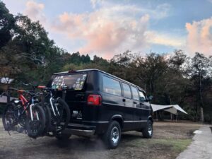 撤収後、機材を下ろして、翌日泥や火山灰で汚れた機材をキレイにして次の出店に備えます