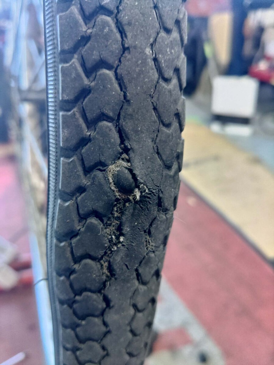 以前メンテナンスをさせていただいたお客様から前輪のタイヤ交換のご依頼をいただきました