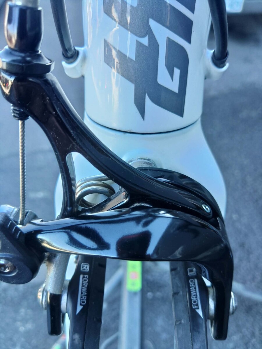 前ブレーキはキャリパータイプ、ブレーキシュー(ゴム)が擦り減ってくると遊びが増えてスカスカした感じになります