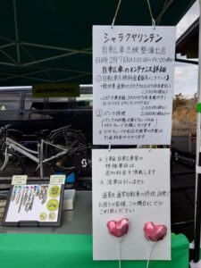 内容は前回同様、自転車の安全点検、修理作業、オリジナルグッズの販売を行います