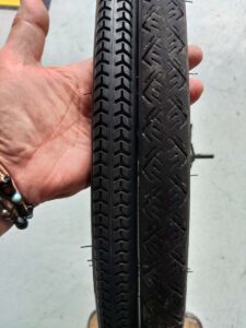 3年ほど使用されてるアルベルト、後輪の溝はまだあったものの、サイドのカットが数か所、タイヤ表面が荒れていたのもあったので交換しようと思ったら、ニップル(スポークとリムを繋ぐ金具)が1本割れてなくなってました
