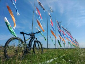 当店から車で5分、自転車で10~15分くらいにある ”庄内川の鯉のぼり🎏” が掲揚されてます